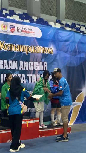 Palembang, Poskita.id — Alya Rubiya Yuki berhasil membanggakan nama Sumsel pada ajang nasional. Perempuan kelahiran Palembang 15 Desember 2011 berhasil meraih medali perunggu pada Kejuaraan Anggar Wali Kota Cup II Kota Tangerang yang digelar di GOR Nambo, Banten, 27–29 Juni 2025.
