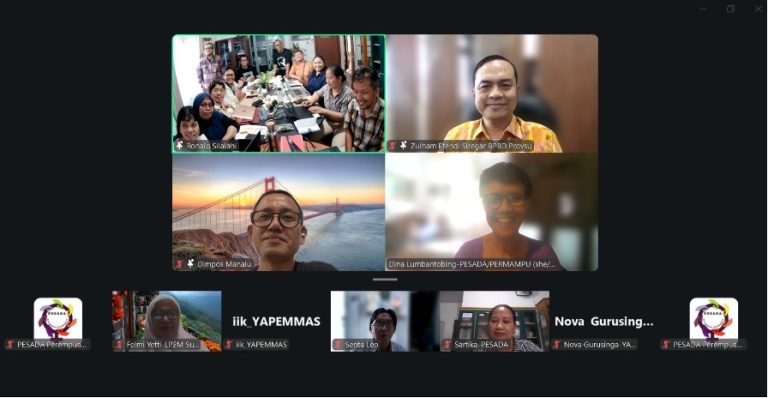 Pada tanggal 12 Februari 2026, PESADA Perempuan Pembaharu (PESADA) bersama Konsorsium PERMAMPU dengan beberapa CSOs/LSM SUMUT yang terlibat respon bencana seperti WALHI, KKSP, YAPIDI, Yappemas, PKPA, Srikandi Lestari, Yayasan PUSAKA Nias serta dari luar SUMUT yaitu LP2M SUMBAR sebagai anggota PERMAMPU yang terdampak bencana; melakukan kegiatan refleksi “Upaya Tanggap Darurat Bencana dan Advokasi Fase Rehabilitasi dan Rekonstruksi” secara hybrid.