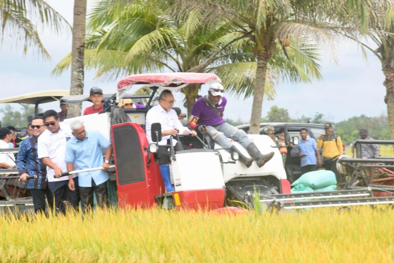 Rombongan ini tiba sekitar pukul 09.15 wib. Tak menunggu lama, Menko dan Pj Gubernur Sumsel langsung melakukan panen raya bersama petani menggunakan mesin traktor di salah satu lahan sawah milik petani, Supiyo di Desa Sri Menanti seluas 4 hektare.
