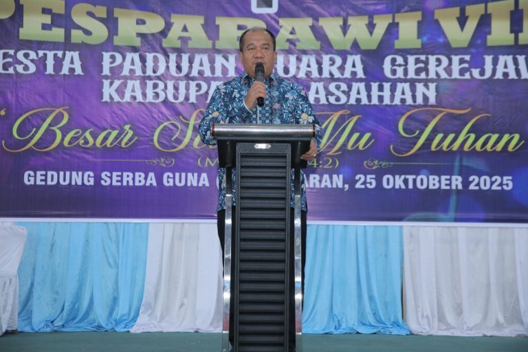 Kisaran, — Pemerintah Kabupaten Asahan memberikan apresiasi atas pelaksanaan Pesta Paduan Suara Gerejawi (Pesparawi) VIII Kabupaten Asahan Tahun 2025 yang berlangsung meriah di Gedung Serbaguna Kisaran. Kegiatan yang digelar selama dua hari, 24–25 Oktober 2025, dihadiri langsung oleh Bupati Asahan Taufik Zainal Abidin, S.Sos., M.Si., Ketua DPRD Asahan yang diwakili oleh Dahniel Banjarnahor (Anggota DPRD Fraksi PDI Perjuangan), unsur Forkopimda, OPD, serta para tokoh gerejawi. Suasana penuh sukacita yang tercipta sepanjang kegiatan mencerminkan kuatnya semangat kebersamaan, persaudaraan, dan kerukunan umat beragama di Kabupaten Asahan.