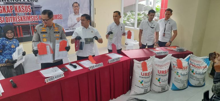 “Kasus pertama diungkap pada 10 Januari 2026 di Ogan Komering Ilir (OKI) ada dua tersangka dengan barang bukti 5 ton pupuk subsidi jenis Urea dan Phonska (NPK) . Kasus kedua diungkap pada 27 Januari 2026 di kawasan 7 Ulu Palembang berhasil diamankan tujuh tersangka dengan barang bukti pupuk subsidi 9 ton,”ucapnya.
