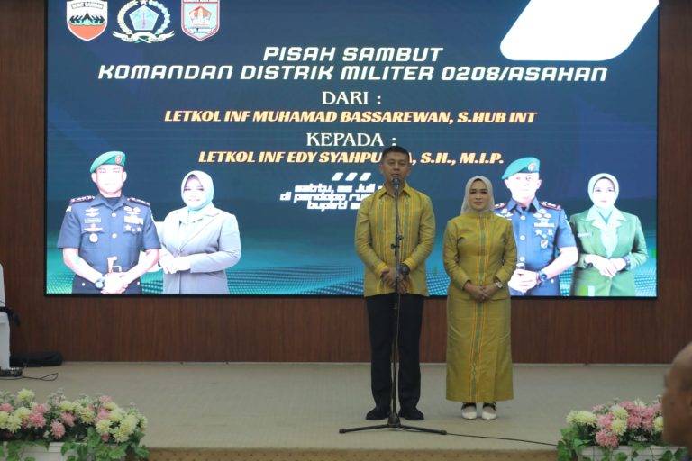 Asahan, Poskitaid — Pemerintah Kabupaten Asahan menggelar acara pisah sambut Komandan Kodim 0208/Asahan dari Letkol Inf Muhammad Basserewan, S.Hub.Int kepada Letkol Inf Edy Syahputra, S.H., M.I.P. Acara berlangsung hangat dan penuh kekeluargaan di Pendopo Rumah Dinas Bupati Asahan, Sabtu malam (26/07/2025), dihadiri oleh Bupati dan Wakil Bupati Asahan, Ketua DPRD, Forkopimda Asahan, Forkopimda Kabupaten Batubara dan Kota Tanjung Balai, Sekretaris Daerah, para Kepala OPD, Camat se-Kabupaten Asahan, serta Ketua dan Staf Ahli TP PKK.