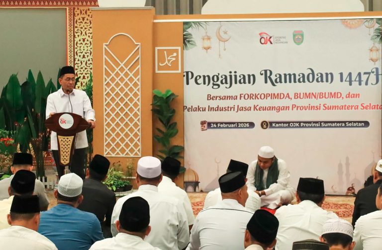 Palembang, Poskita.id – Otoritas Jasa Keuangan (OJK) Provinsi Sumatera Selatan bersama Pemerintah Provinsi Sumatera Selatan memperkuat sinergi dalam mendorong literasi dan inklusi keuangan syariah melalui kegiatan Safari Ramadhan 1447 H yang melibatkan Forum Koordinasi Pimpinan Daerah (FORKOPIMDA) serta pelaku Industri Jasa Keuangan di Provinsi Sumsel, Selasa (24/02).