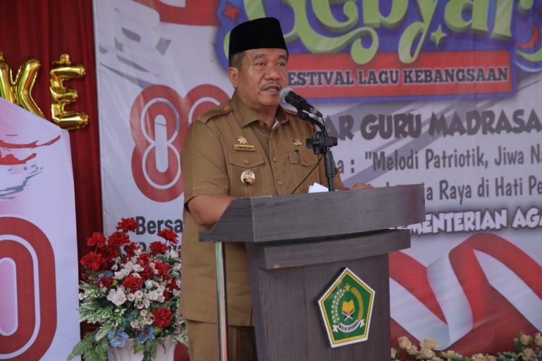 Asahan, Poskita.id – Dalam rangka menyambut Hari Ulang Tahun (HUT) ke-80 Kemerdekaan Republik Indonesia (RI), Kantor Kementerian Agama Kabupaten Asahan menggelar Gebyar Festival Lagu Kebangsaan Tahun 2025 Antar Guru Madrasah se-Kabupaten Asahan dengan tema “Melodi Patriotik, Jiwa Nasional, Menggema Semangat Indonesia Raya di Hati Pendidik Madrasah”, Senin (04/08/2025). Acara yang berlangsung di halaman Kantor Kemenag Kabupaten Asahan ini turut dihadiri oleh Bupati Asahan, Wakil Bupati Asahan, Ketua DPRD Kabupaten Asahan, Kepala Kantor Kemenag Kabupaten Asahan serta jajaran Kemenag Asahan dan tamu undangan lainnya.