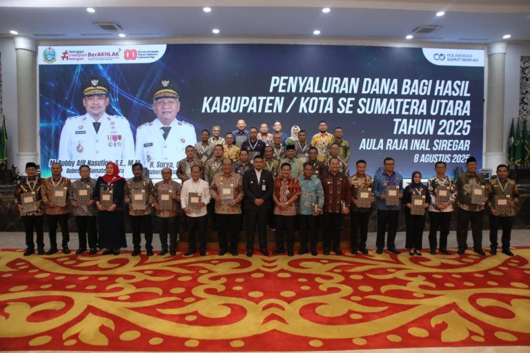 Kisaran, Poskita.id — Pemerintah Kabupaten Asahan menerima penyaluran Dana Bagi Hasil (DBH) Tahun Anggaran 2025 dari Pemerintah Provinsi Sumatera Utara dalam kegiatan resmi yang digelar di Aula Raja Inal Siregar, Kantor Gubernur Sumut, Medan. Penyerahan DBH disampaikan langsung oleh Gubernur Sumatera Utara, M. Bobby Afif Nasution, kepada seluruh bupati dan wali kota se-Sumatera Utara. Untuk Kabupaten Asahan, DBH diterima langsung oleh Bupati Asahan, Taufik Zainal Abidin, S.Sos, M.Si.