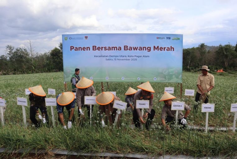 Pagar Alam, Poskita.id – Dalam upaya memperkuat ketahanan pangan daerah sekaligus mendukung pengendalian inflasi, Kantor Perwakilan Bank Indonesia Provinsi Sumatera Selatan bersama Pemerintah Kota Pagar Alam melakukan kegiatan Panen Bersama Bawang Merah di Kecamatan Dempo Utara, Kota Pagar Alam, Sabtu (15/11/2025).