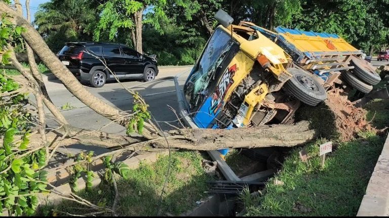 Palembang, Poskita.id -– Sebuah truk bermuatan batu bata dengan nopol BG 8329 BA mengalami kecelakaan tunggal setelah menabrak tiang listrik dan pohon di Jalan Soekarno Hatta, Kelurahan Siring Agung, Kecamatan Ilir Barat I, Palembang, Kamis (27/11/25) sore.