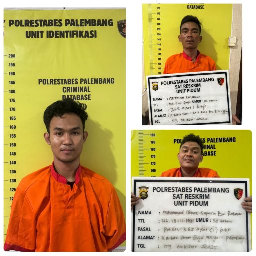 Palembang, Poskita.id — Tim gabungan Subdit III Jatanras Polda Sumsel dan Satreskrim Polrestabes Palembang meringkus tiga pelaku begal sadis yang meresahkan masyarakat kota Palembang. Ketiga pelaku beraksi di tiga lokasi berbeda diwilayah kota Palembang.
